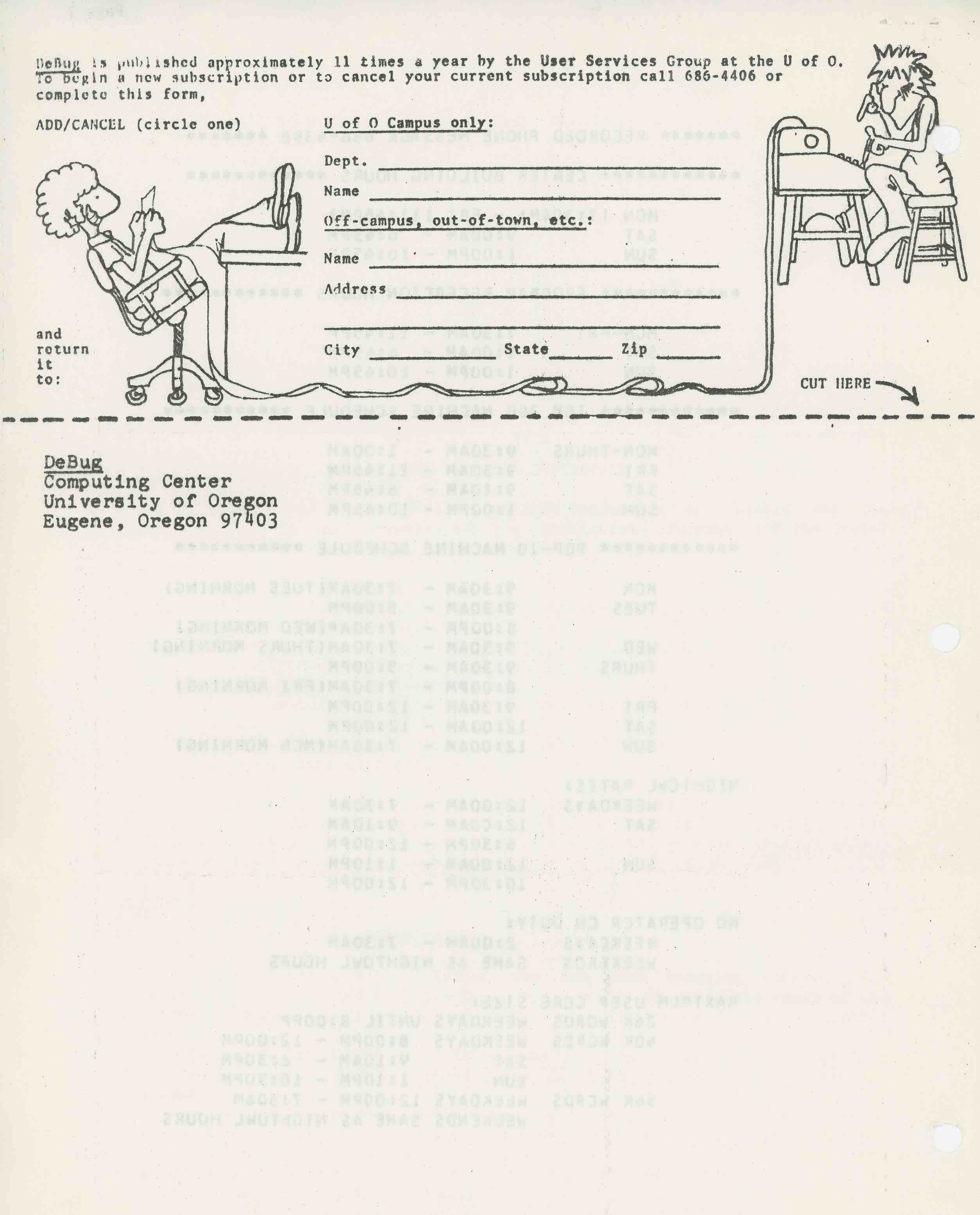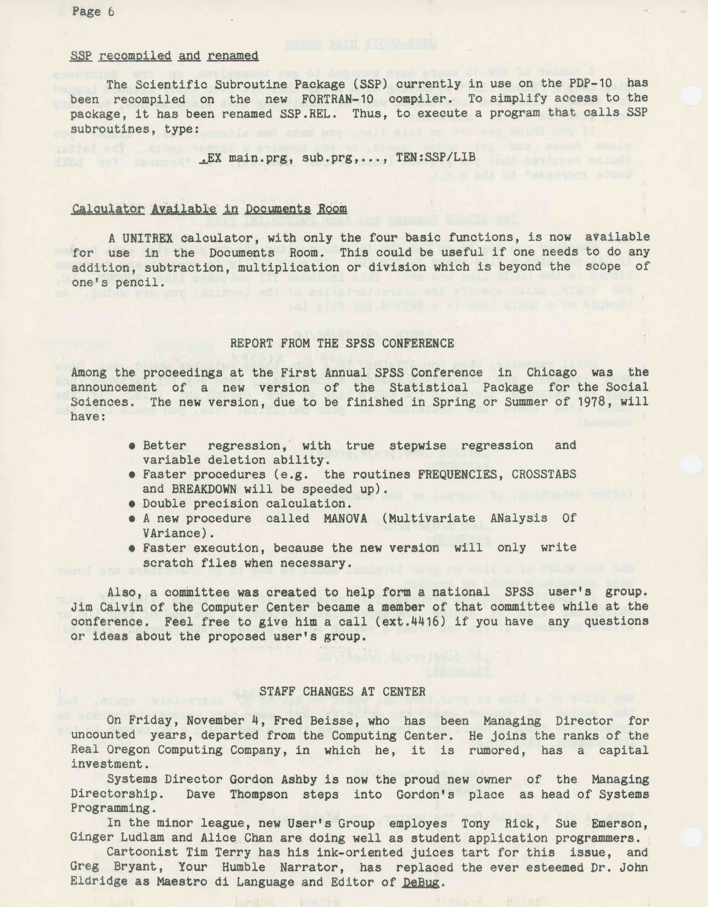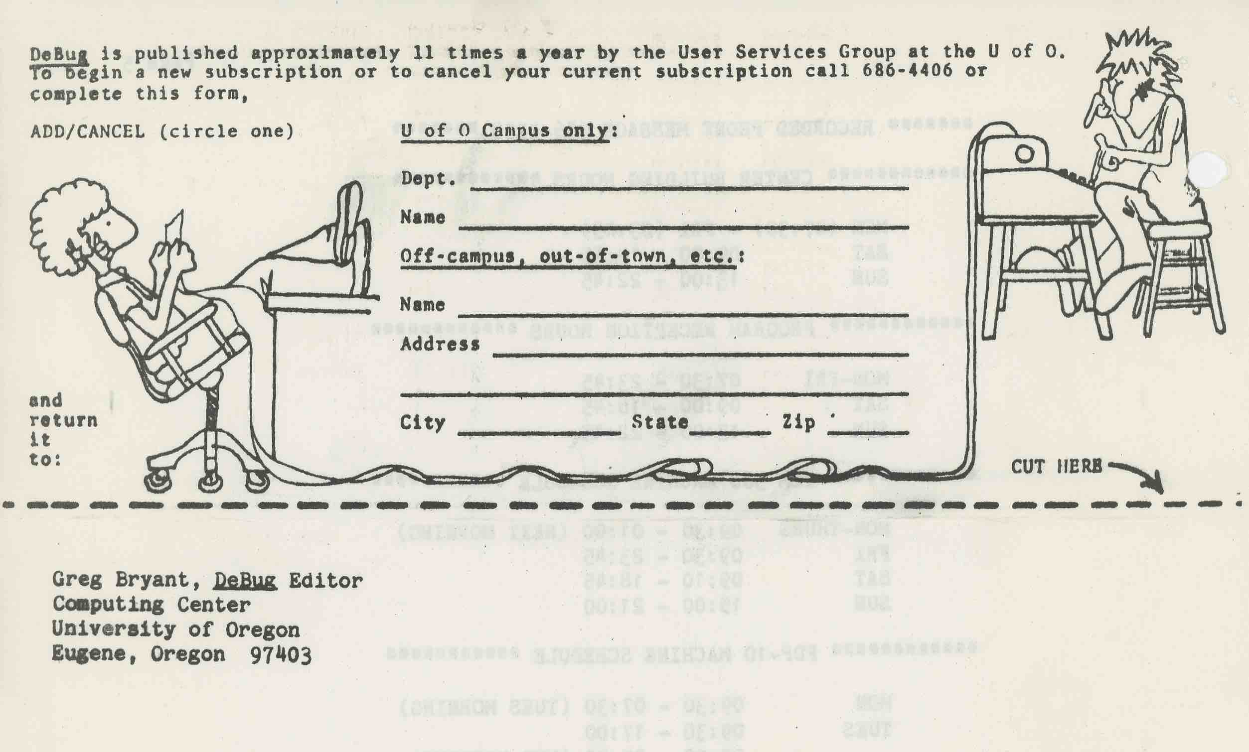 Greg BryantIn 1977 I began to write and produce a publication that I'd been reading with purpose and pleasure since 1974. De Bug or DeBug was the University of Oregon's computing journal, from the heart of the campus technology community, the Computing Center.
