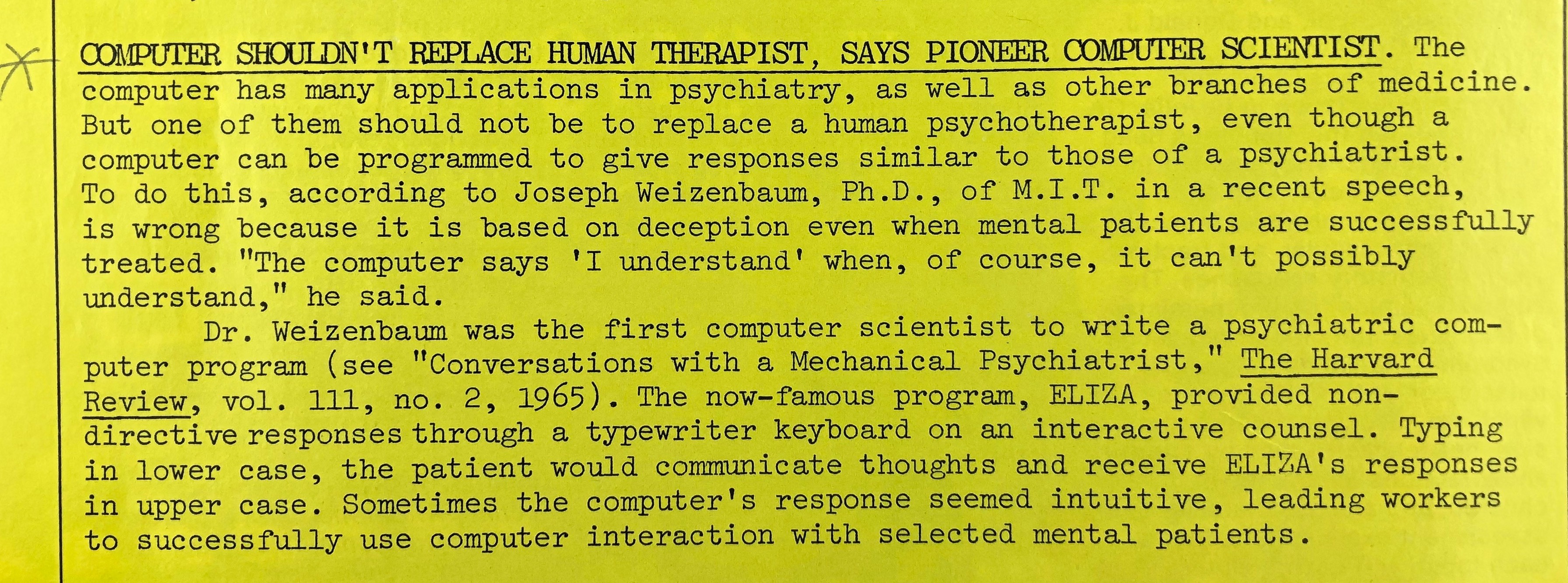 I was impressed by Joseph Weizenbaum's 1976 book 'Computer Power and Human Reason', and I wrote a news