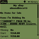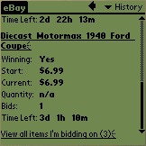 Here's an auction I'm not winning. I could tap on the link to bid again ...