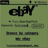 First I select the "toys, bean bags plush" category. Then I type in a few keywords: Ford coupe diecast ...