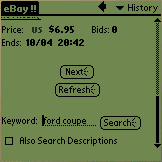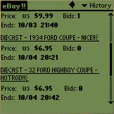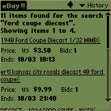 The Palm gives me back four items at a time. It tells me that it found 11 auctions for these toys ...