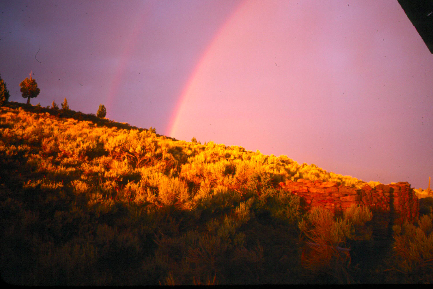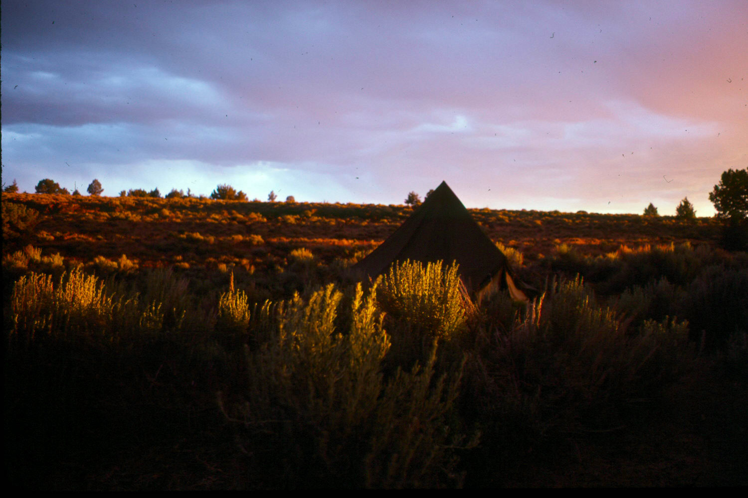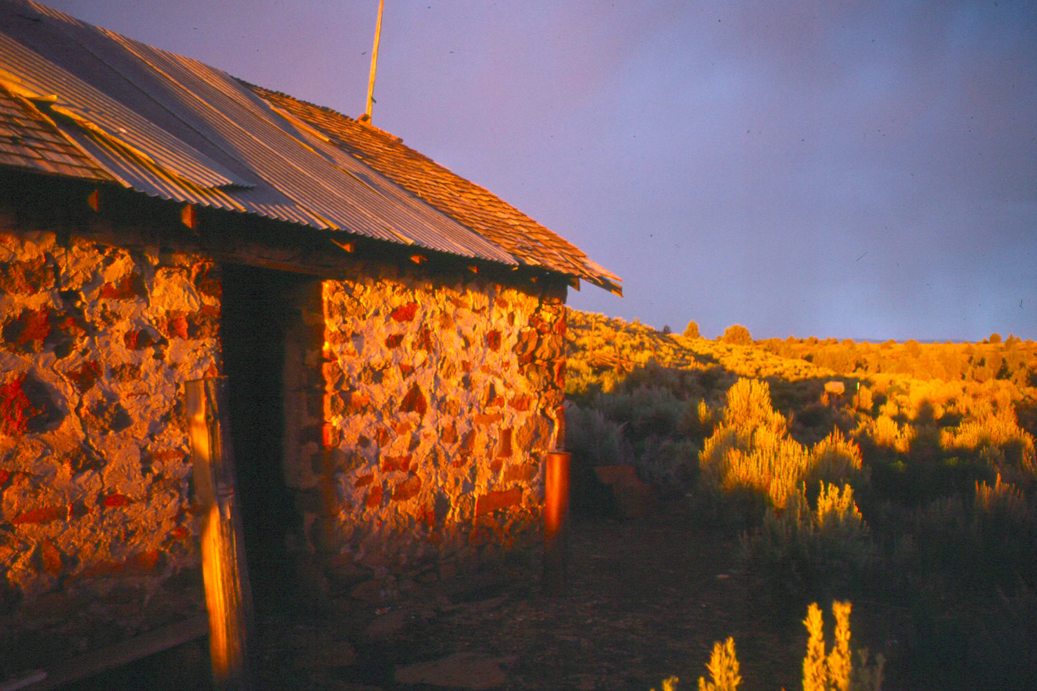 I don't really understand how we were sent to this abandoned plateau ranch -- a site called Lauserica. It was beautiful, surrounded by fields of sharp-to-the-touch mosses that looked like lush, natural lawns. I believe it was just me, another fellow, and three women -- all undergrads. We were dropped off and stayed for a week, to survey a nearby hill. All the buildings were roofless, so we set up a small one-pole army tent and piled in there for some surprisingly cold nights. And then, one of those nights, an endless, apocalyptic storm blew through ... with continuous massive rain, wind, and lightning for hours and hours. We should have been killed -- we were at the highest point (by thousands of feet) and our tent had a metal rod running down its center! We couldn't go outside, since there was a good chance our tent would get washed or blown off the mountain. We pressed back against the soaking wet walls of this tent, as far as possible from the cast-iron pole, which was electromagnetically possesed and vibrated violently like an off-kilter washing machine. The level of static electricity in the tent made our hair stand on end. A terrific learning opportunity!