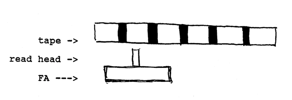 In the finite control model of FA, the machine comes in contact with a tape, representing a string of symbols, by means of a single read head, or input.