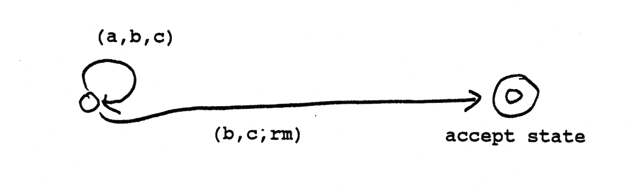 rm-1 within ( , , ) -- when head i on rightmost symbol
