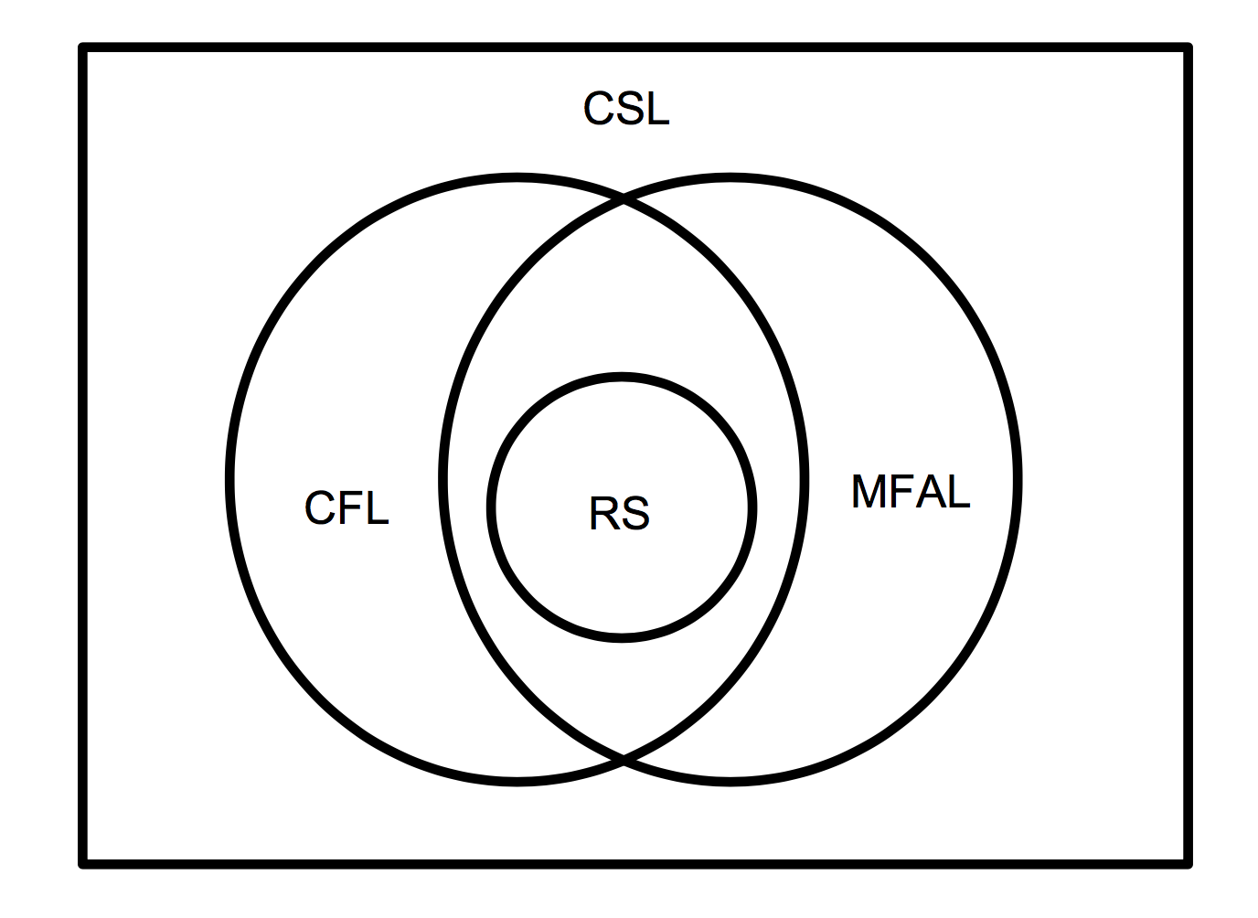 A class of automata that does not accept some CFL is certainly not equivalent to LBA, which could accept this tape by writing markers in the appropriate places. The Multi-head Finite Automata Languages (MFAL) therefore don't fit into the RS, CFL and CSL hierarchy, as shown below.